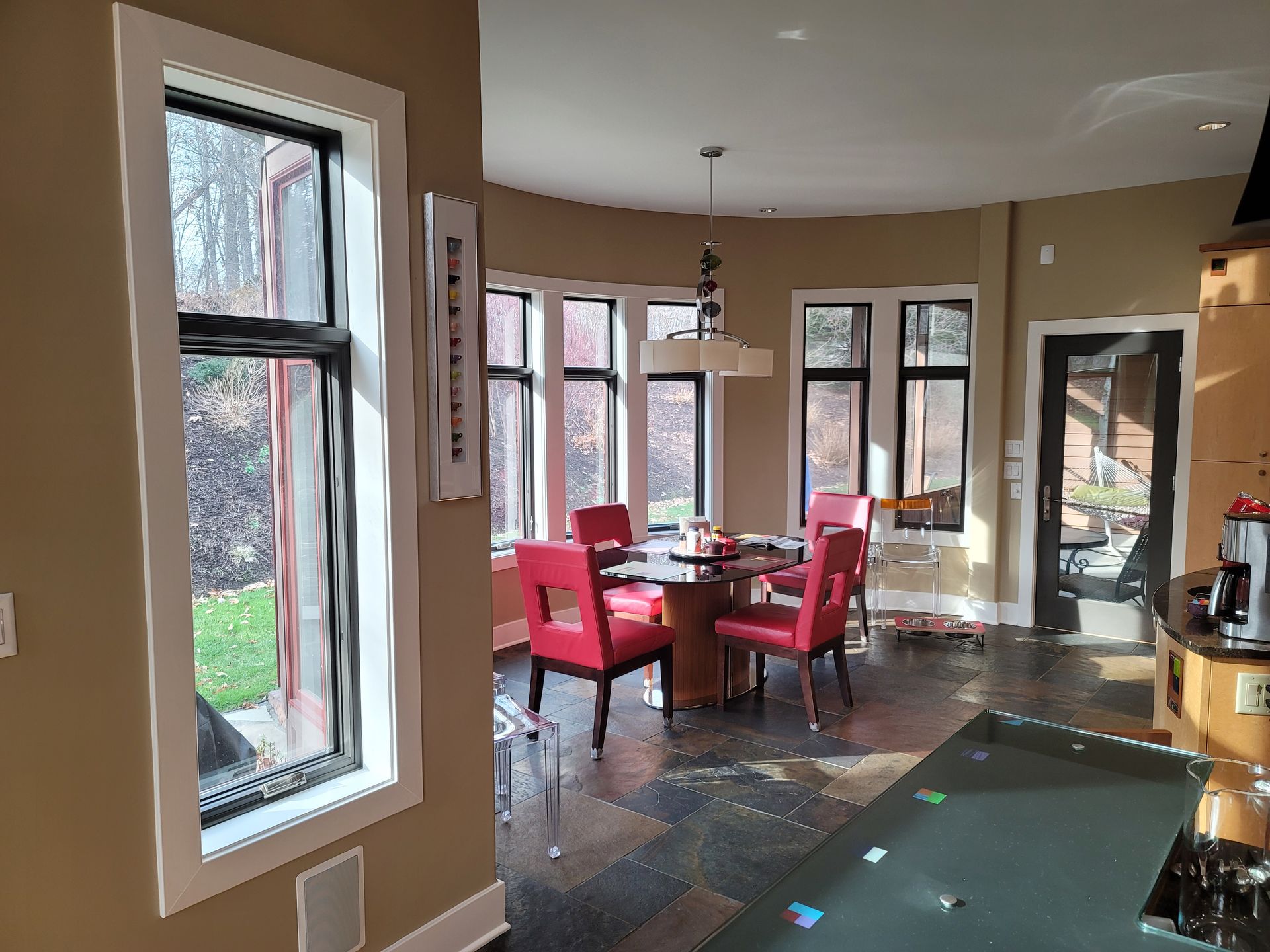 We love a challenge! This beautiful home has many unique curves and accents. The ceilings were very high and the home is filled with lovely items. Extreme care was in order. The customer chose great colors and we helped them tie it all together .